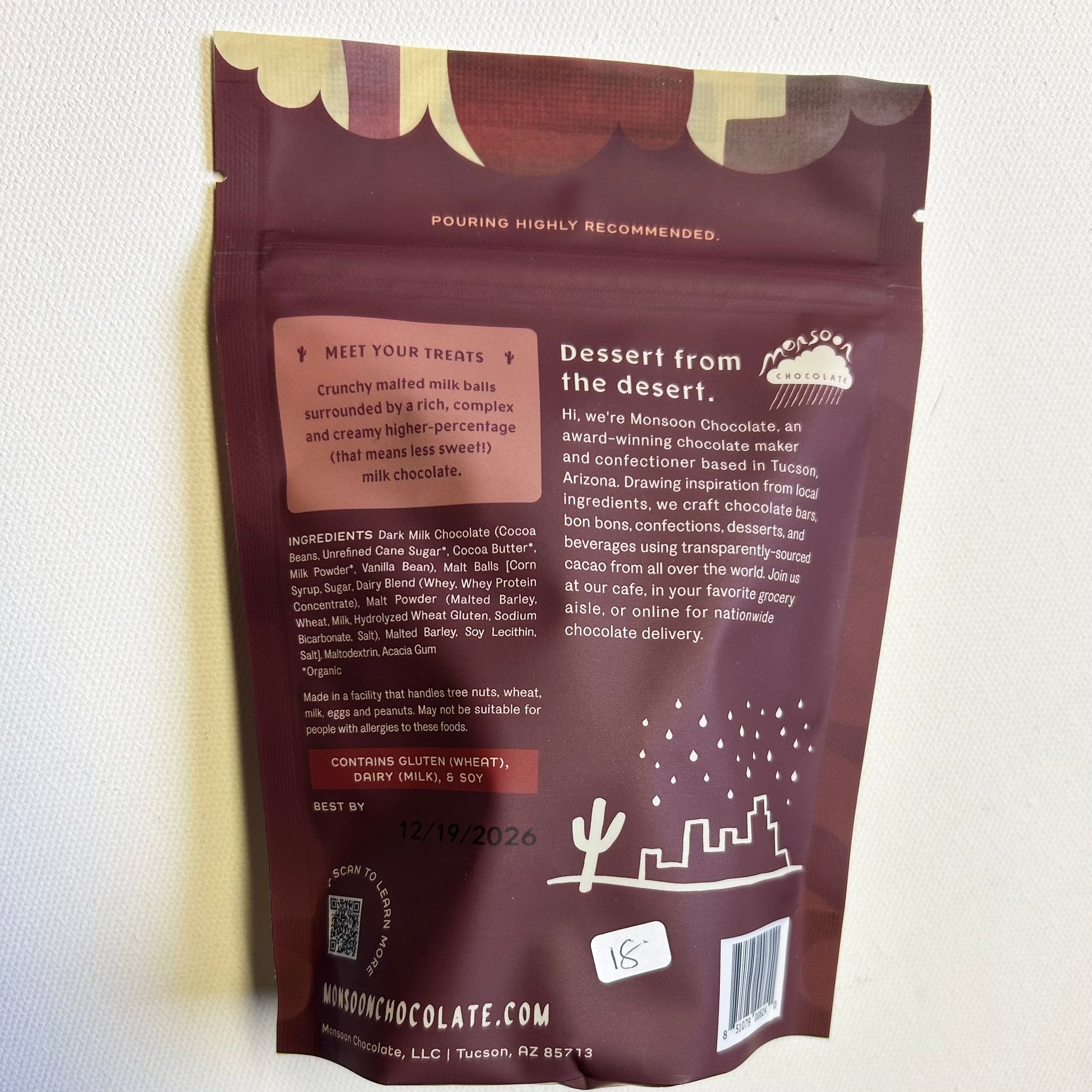 4.5 oz. bag of chocolates covered malted milk balls. Mary's favorite!